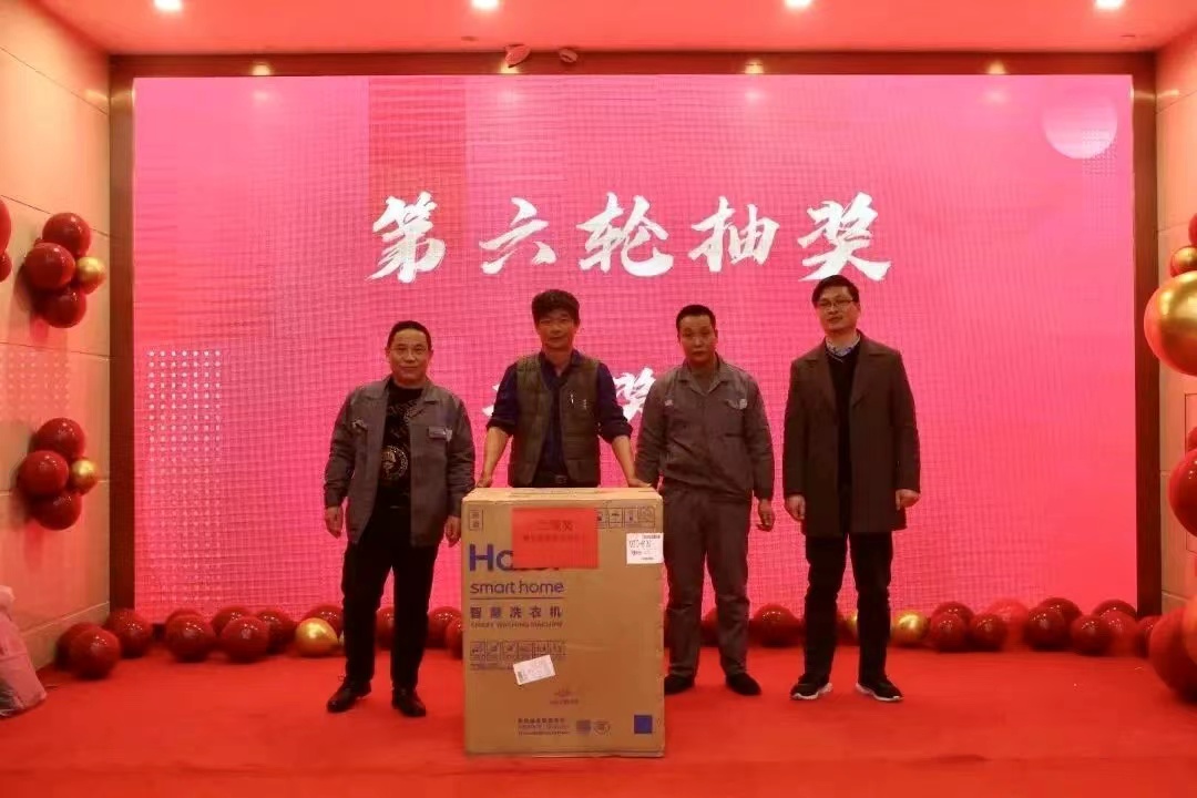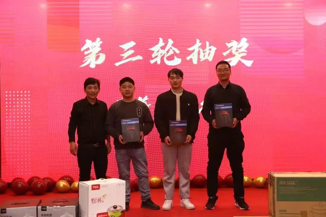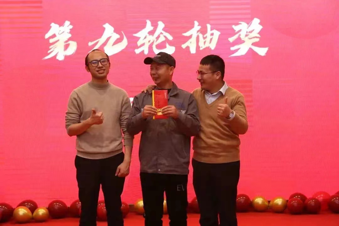 年会上,公司给大家抽取了许多的礼品以及现金大奖(10000元)。我们拥有整齐划一的步伐,我们拥有心有灵犀的默契,我们“工作相同、思想互通、感情互通、企业共赢”。